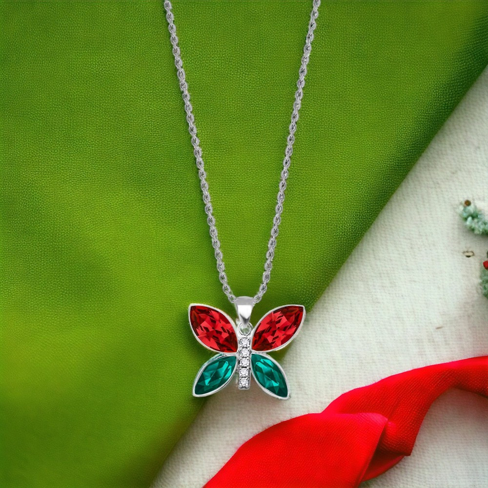 Earrings made of platinum plated 925 sterling silver and Austrian crystals in colour Scarlet and Emerald.Size of the earrings: 1,4 cm.