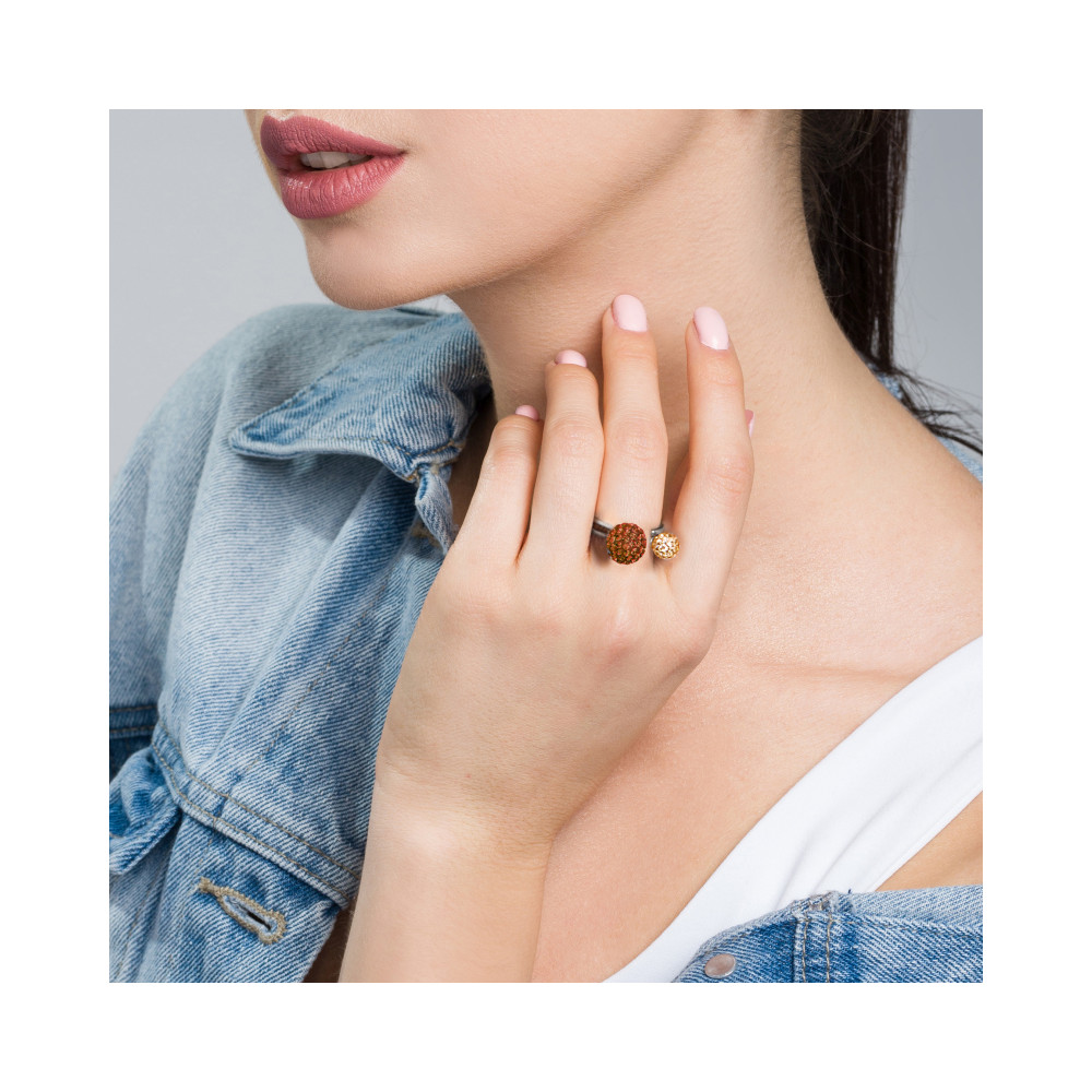 Ring made of 925 sterling silver and exclusive crystals in colours Smoked Topaz and Golden Shadow.