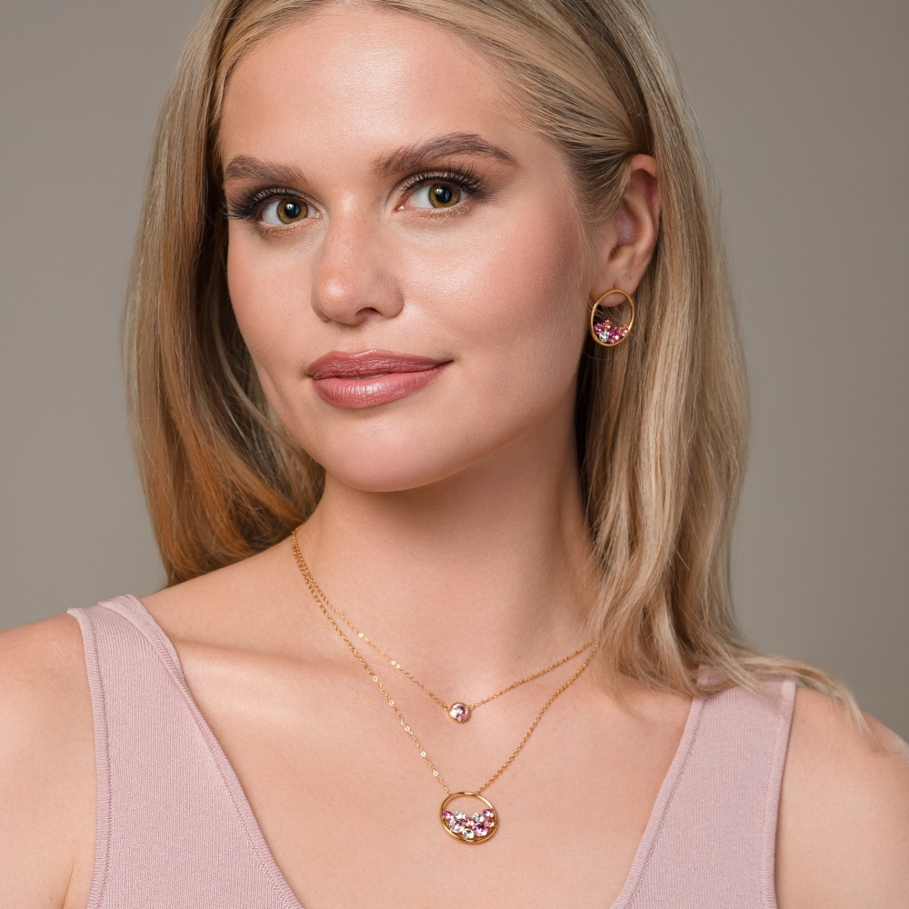 SCINTILLE gold-plated stainless steel earrings with pink crystal | SPARK