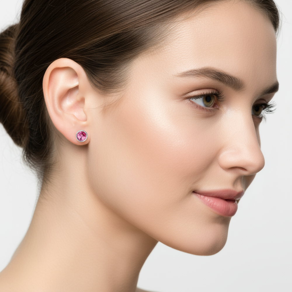 Made of stainless steel, they are water-resistant, will not tarnish, and will maintain their shine. The 6 mm pink Swarovski® crystal, set in an 8 mm frame, provides a subtle, modern, and refined light.