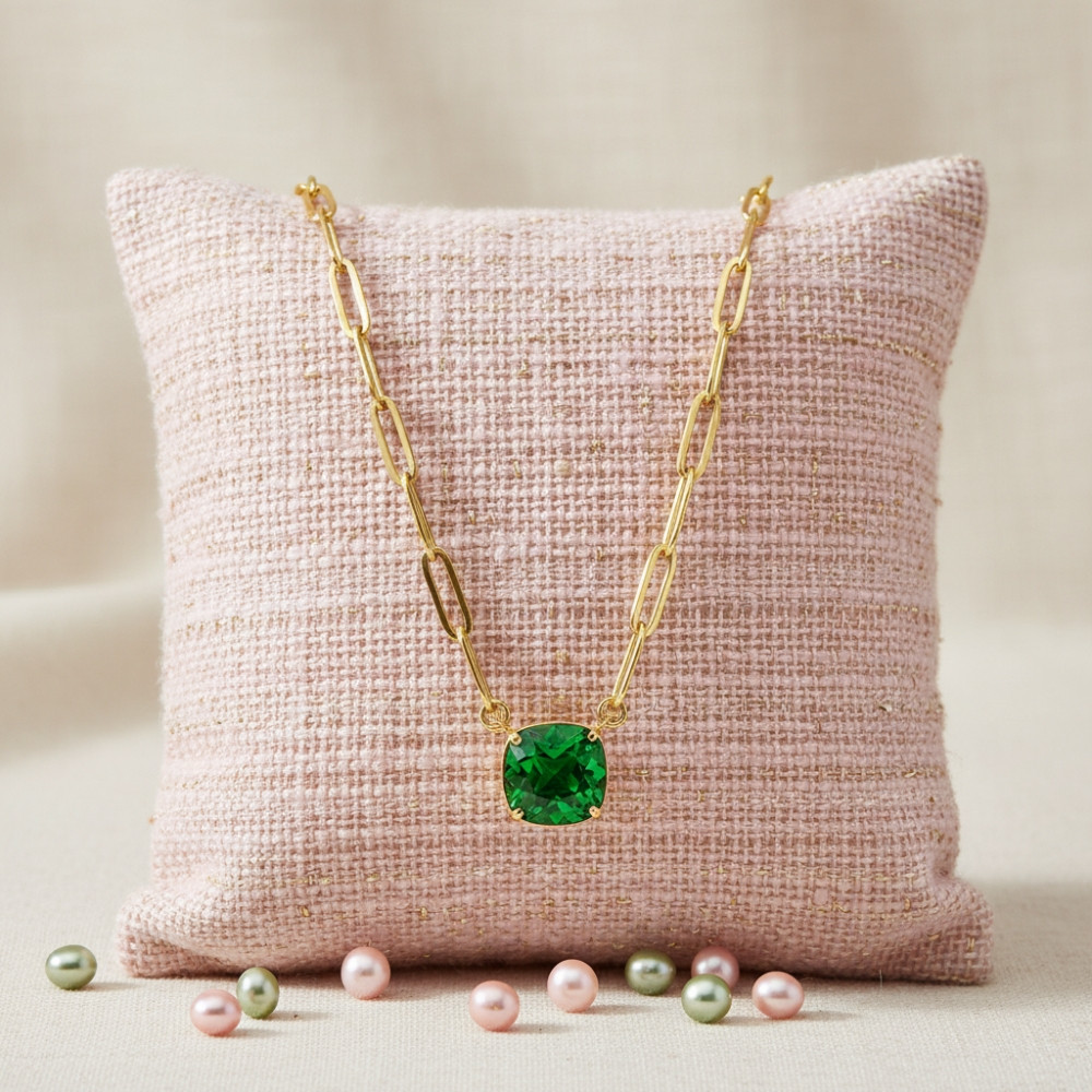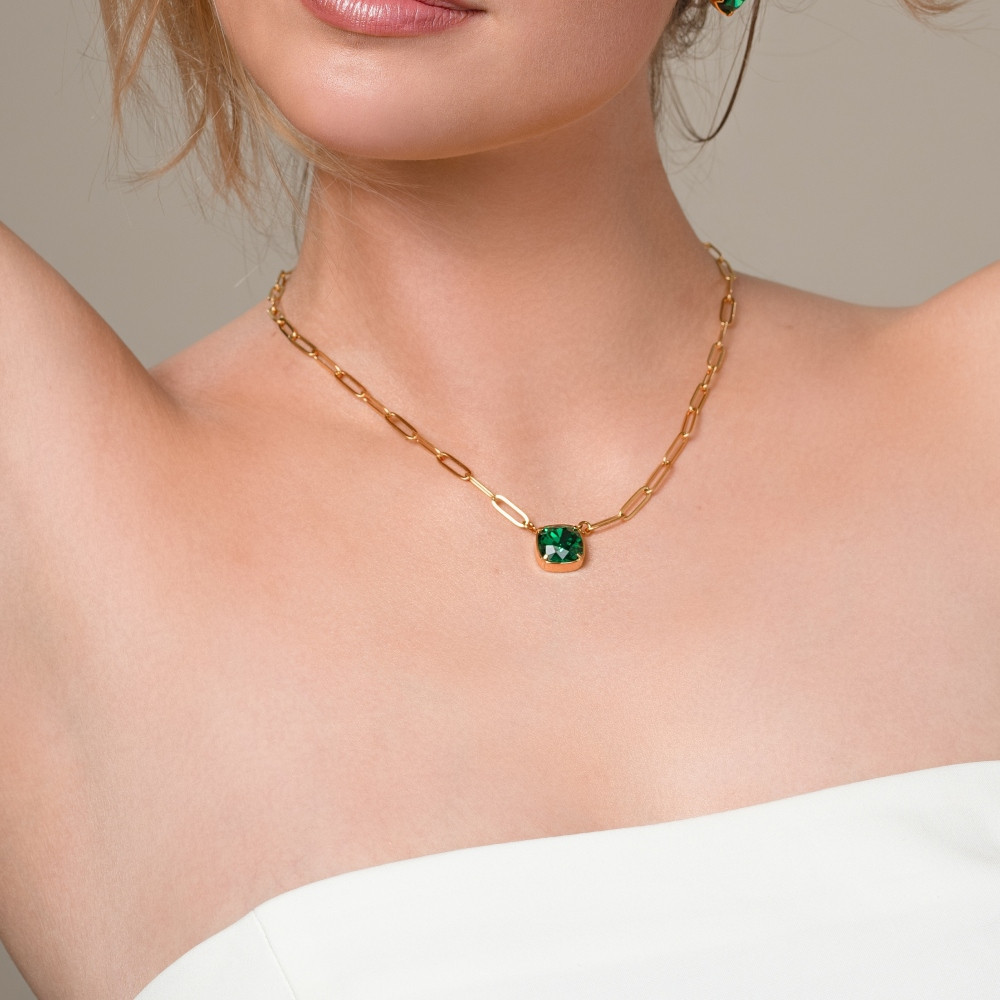 RAYON necklace in gold-plated stainless steel with green crystals | SPARK