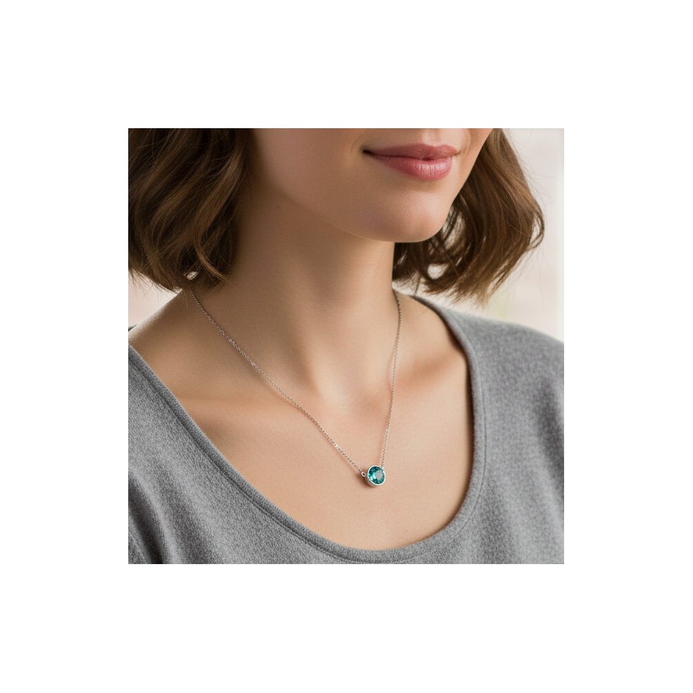 The SCINTILLE necklace combines minimalism and elegance. Its 6 mm blue zircon Swarovski® crystal sparkles beautifully with every movement, creating a delicate and modern look. Lightweight and timeless, this necklace is perfect for everyday wear as well as for more dressed-up occasions.