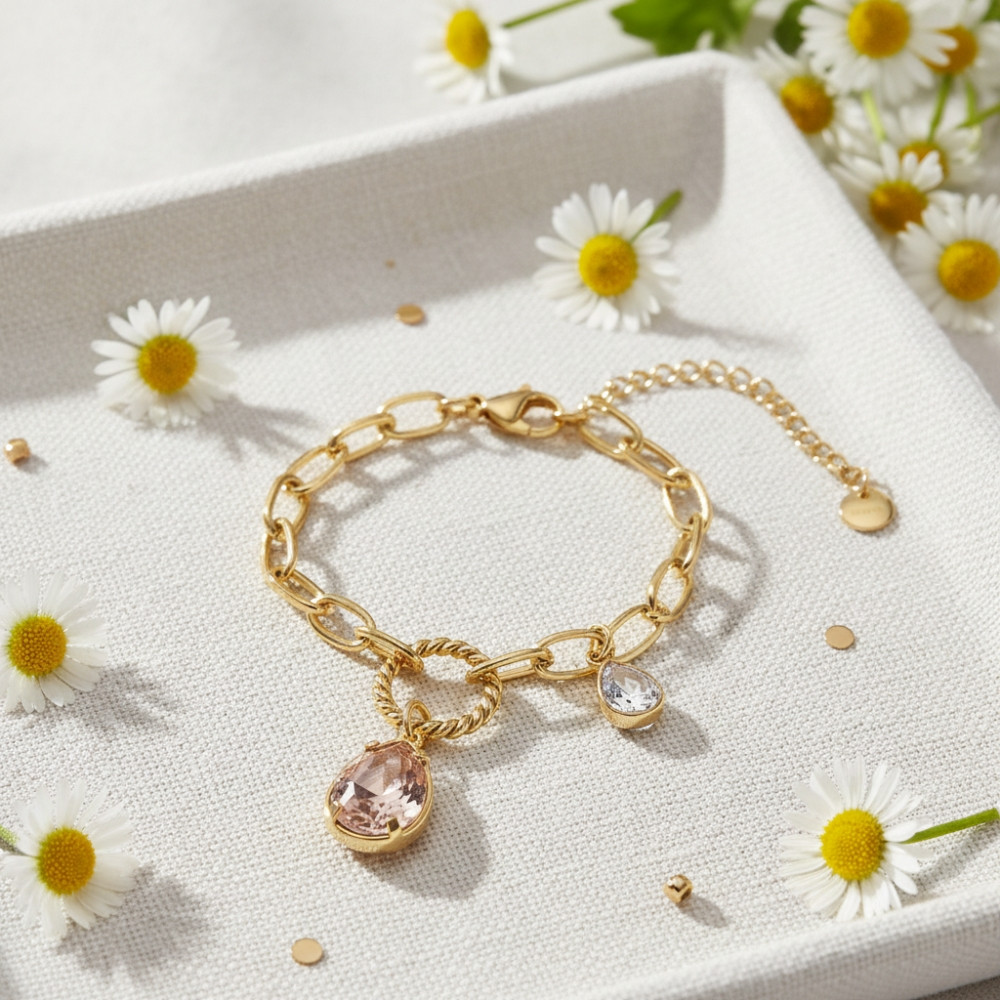RAYON bracelet with delicate pink crystals, gold-plated steel | SPARK