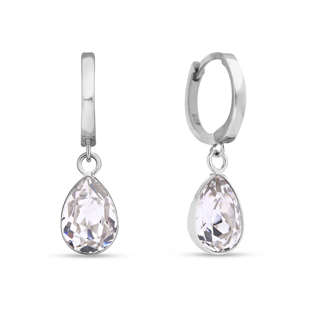 Boucles d'oreilles DEWDROP CREOLES en argent avec cristal blanc | SPARK