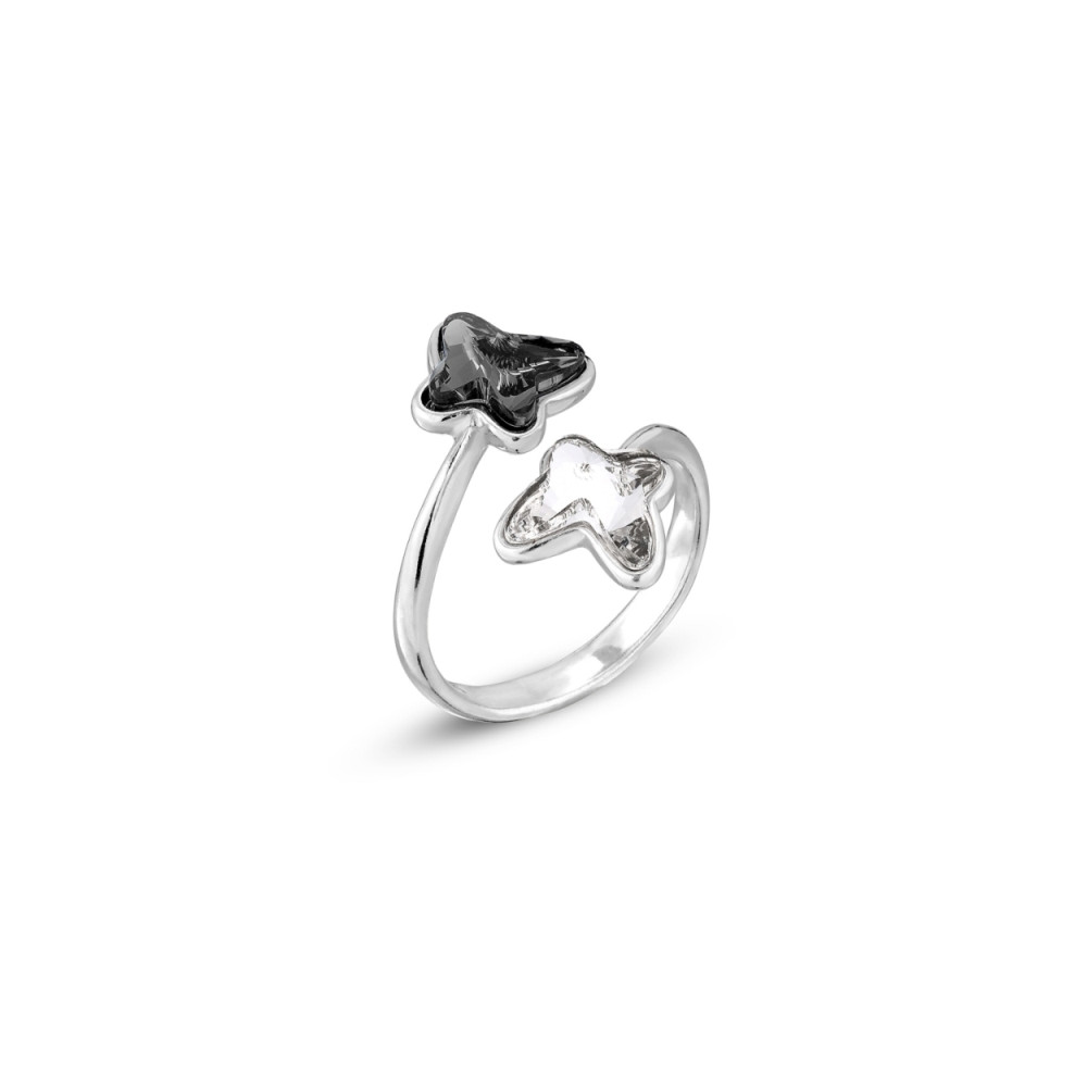 Collier en argent 925 rhodié orné de cristaux de couleur Silver Night.Longueur de chaîne: 47 cm (42 cm + 5 cm extension). Longueur du pendentif: 1.5 cm.