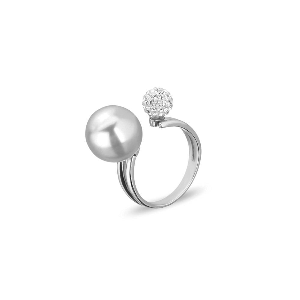 Bracelet en argent 925 rhodié orné de perles de cristaux crystals en couleur Light Grey Pearl et de cristaux en couleur Crystal.Longueur du bracelet: 21 cm (18 cm + 3 cm extension).Taille de perle: 0.5 et 0.6 cm.Taille de perle-pendentif: 1.1 cm.
