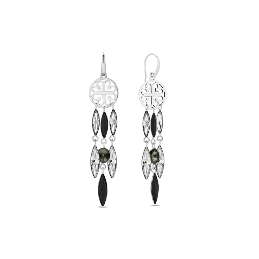 Boucles d'oreille en argent 925 rhodié ornées de cristaux de couleur Crystal, Jet et Black Diamond.