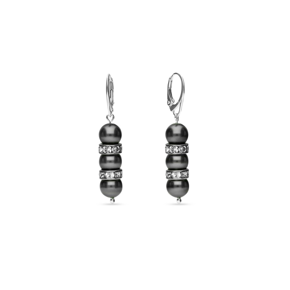 Bracelet en argent 925 rhodié orné de perles de cristaux crystals en couleur Light Grey Pearl et de cristaux en couleur Crystal.Longueur du bracelet: 21 cm (18 cm + 3 cm extension).Taille de perle: 0.5 et 0.6 cm.Taille de perle-pendentif: 1.1 cm.