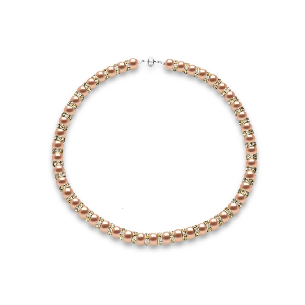 Boucles d'oreille en argent 925 rhodié ornées de perles de cristaux crystals en couleur Peach Pearl.Longueur des boucles d'oreille: 4 cm.