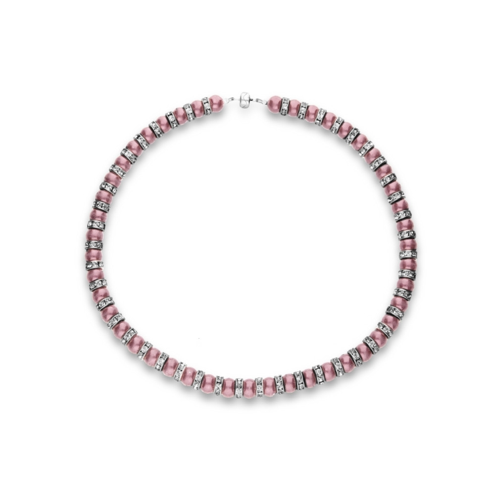Boucles d'oreille en argent 925 rhodié ornées de perles de cristaux crystals en couleur Rosaline Pearl.Longueur des boucles d'oreille: 4 cm.