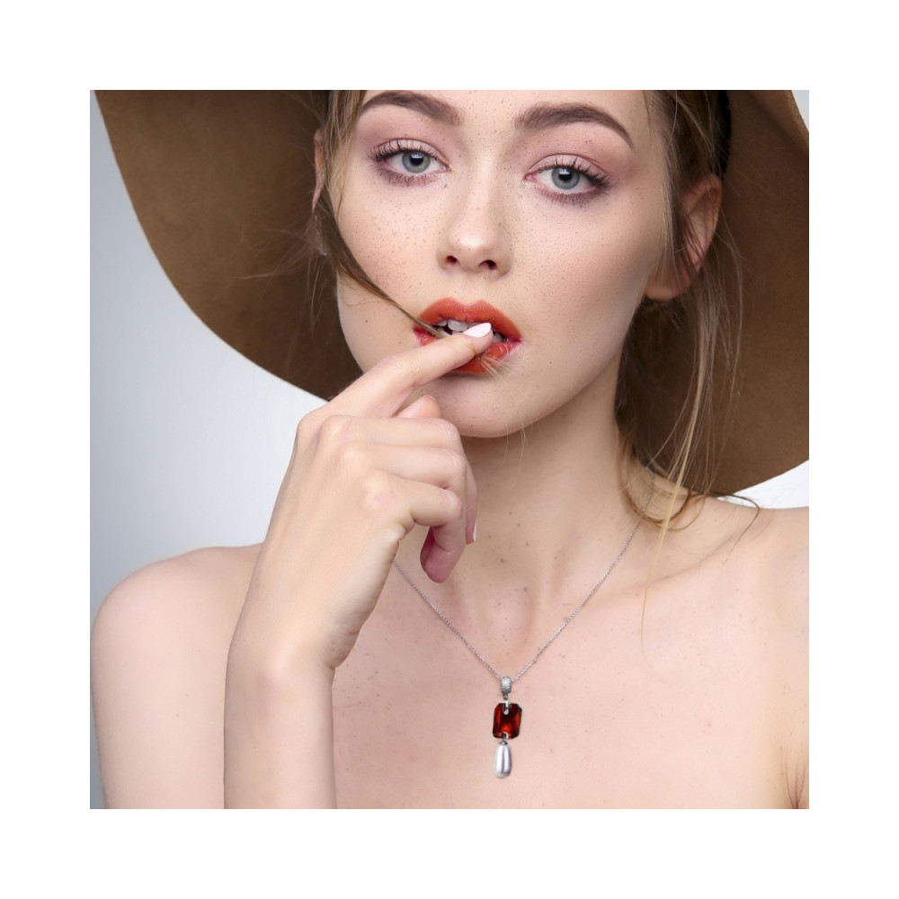 Collier en argent 925 rhodié orné de cristaux de couleur Scarlet et perles de cristaux crystals en couleur White.