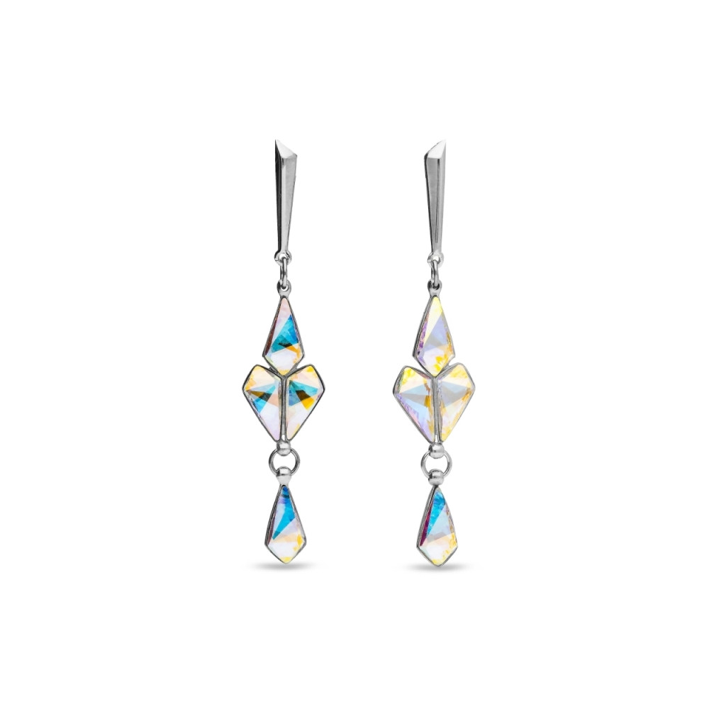 Boucles d'oreilles en argent sterling 925 plaqué or et perles exclusives de cristaux autrichiens de couleur White Pearl.Longueur des boucles d'oreilles : 3,5 cm.