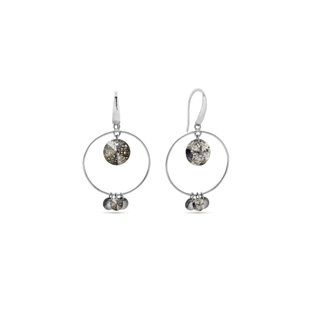 Collier en argent 925 rhodié orné de cristaux de couleur Silver Night et Black Patina.Longueur de chaîne: 47 cm (42 cm + 5 cm extension). Longueur du pendentif: 5 cm.