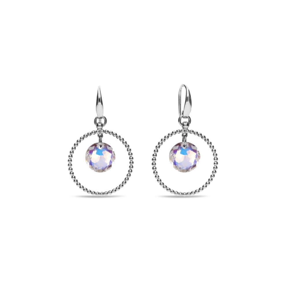Boucles d'oreille en argent 925 rhodié ornées de cristaux de couleur Aurora Borealis.Longueur des boucles d'oreille: 2.8 cm.