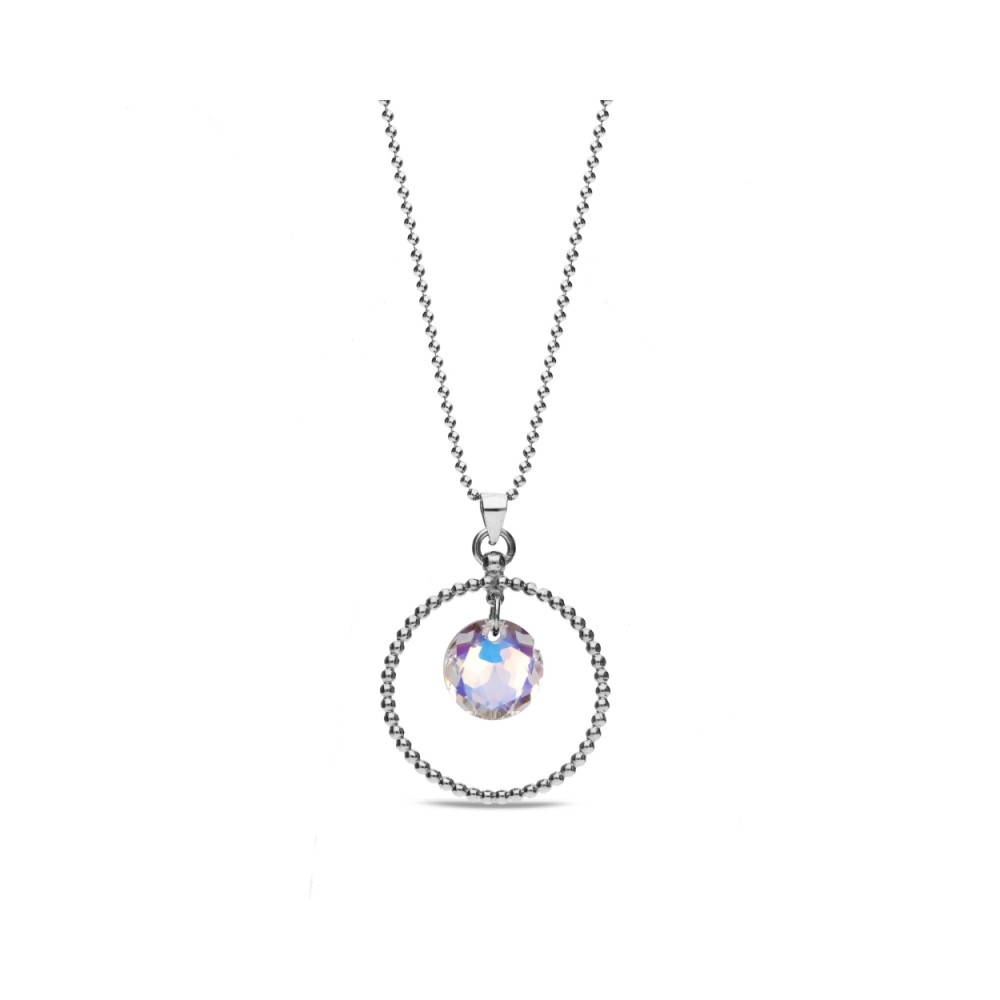 Boucles d'oreille en argent 925 rhodié ornées de cristaux de couleur Aurora Borealis.Longueur des boucles d'oreille: 3.6 cm.