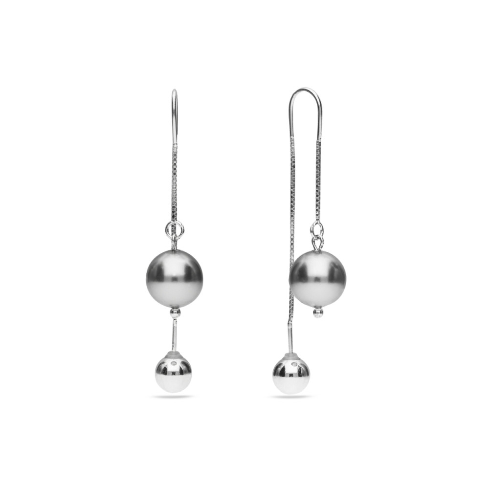 Boucles d'oreille en argent 925 rhodié ornées de perles de cristaux crystals en couleur Light Grey Pearl.Longueur des boucles d'oreille: 3 cm.