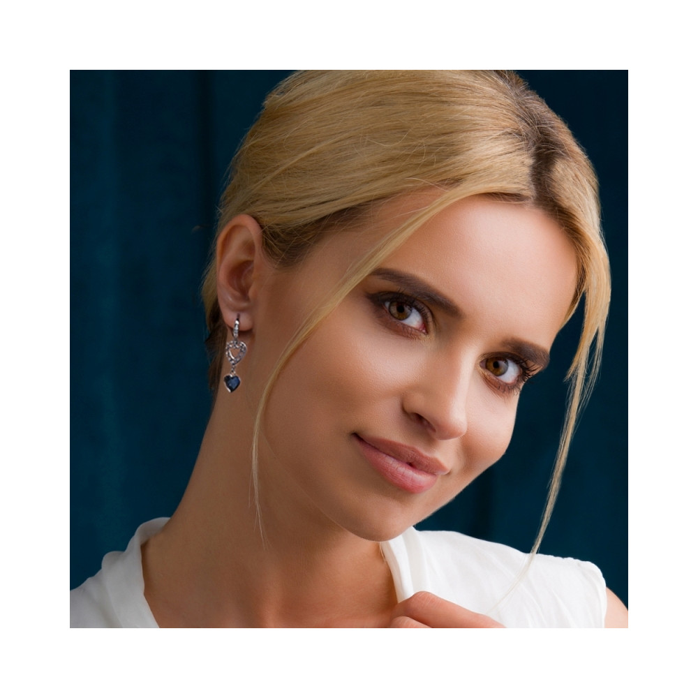 Collier en argent 925 rhodié orné de cristaux de couleur Denim Blue, Paradise Shine et Light Turquoise.Longueur de chaîne: 47 cm (42 cm + 5 cm extension). Longueur du pendentif: 1.5 cm.