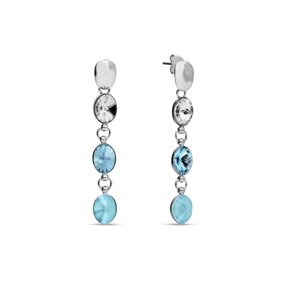 Boucles d'oreille en argent 925 rhodié ornées de cristaux de couleur Crystal, Aquamarine et Summer Blue.