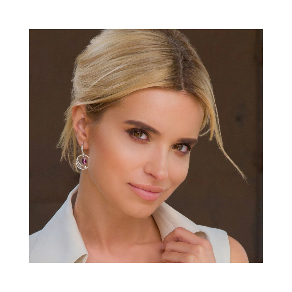 Boucles d'oreille en argent 925 rhodié ornées de cristaux de couleur Light Amethyst, Amethyst, Lilac Shadow et Violet.Longueur des boucles d'oreille: 5 cm.