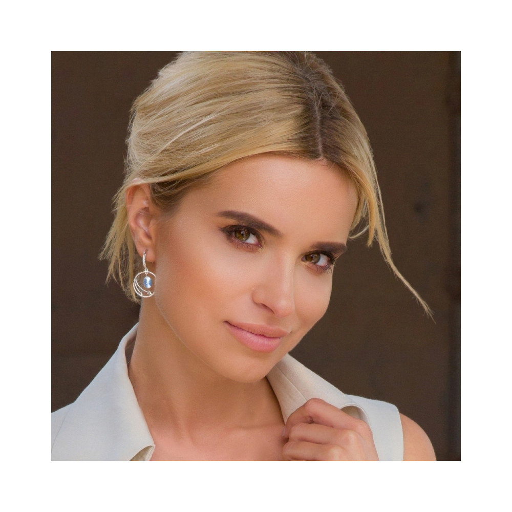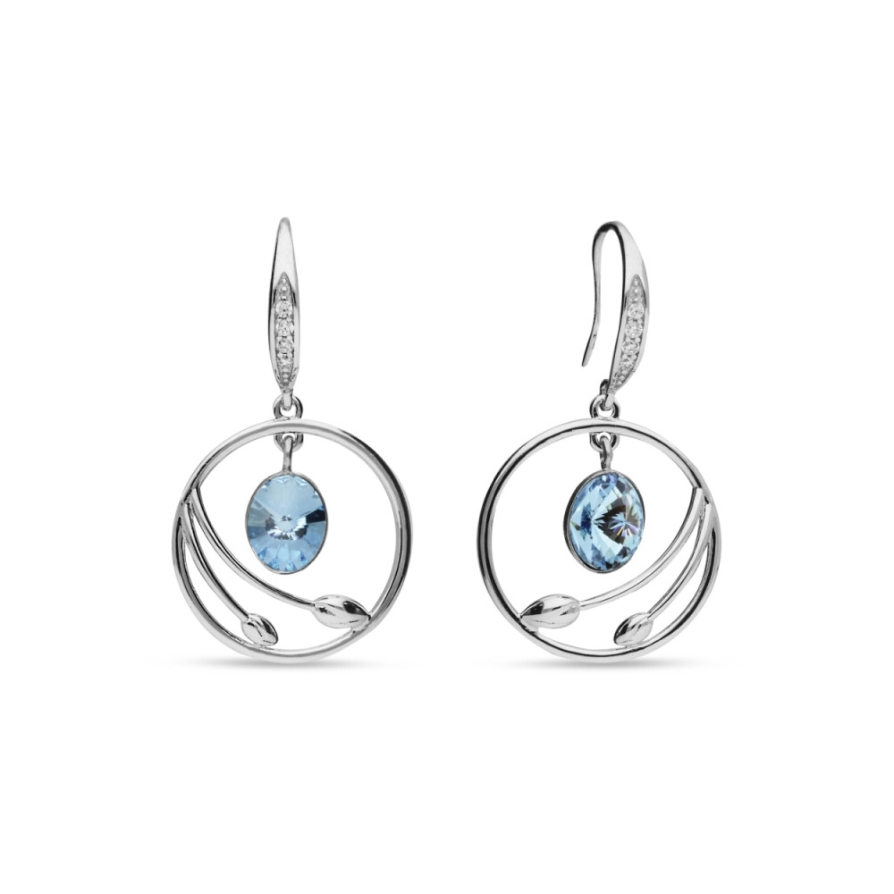Boucles d'oreille en argent 925 rhodié ornées de cristaux de couleur Aquamarine.