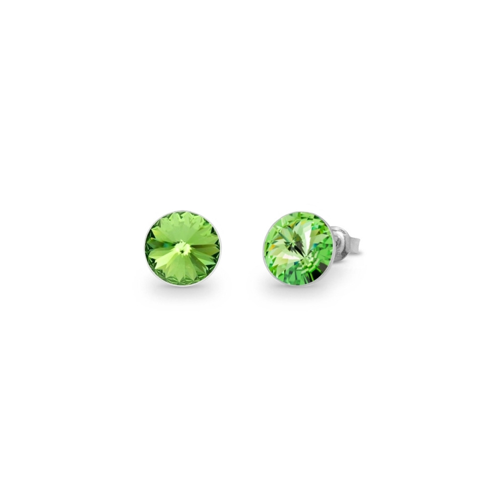 Boucles d'oreille en argent 925 rhodié ornées de cristaux de couleur Peridot.Taille des cristaux: environ 0.6 cm.