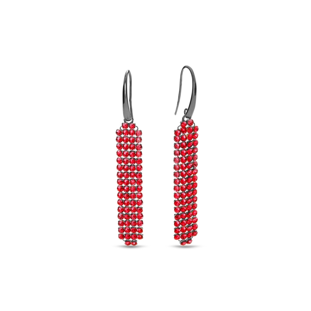 Boucles d'oreille en argent 925 rhodié ornées de cristaux de couleur Light Siam.Longueur des boucles d'oreille: 3.7 cm.