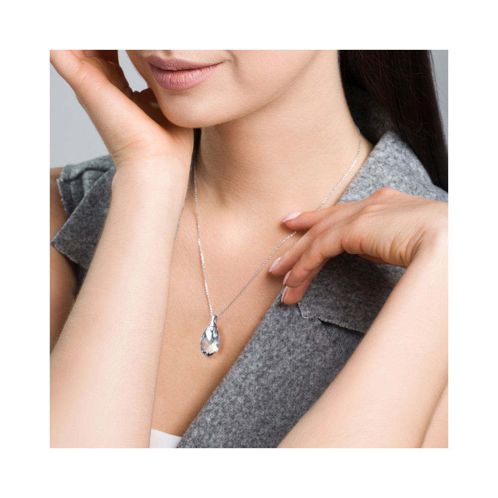 Boucles d'oreille en argent 925 rhodié ornées de cristaux de couleur Crystal Light Chrome.Longueur des boucles d'oreille: 3.2 cm.