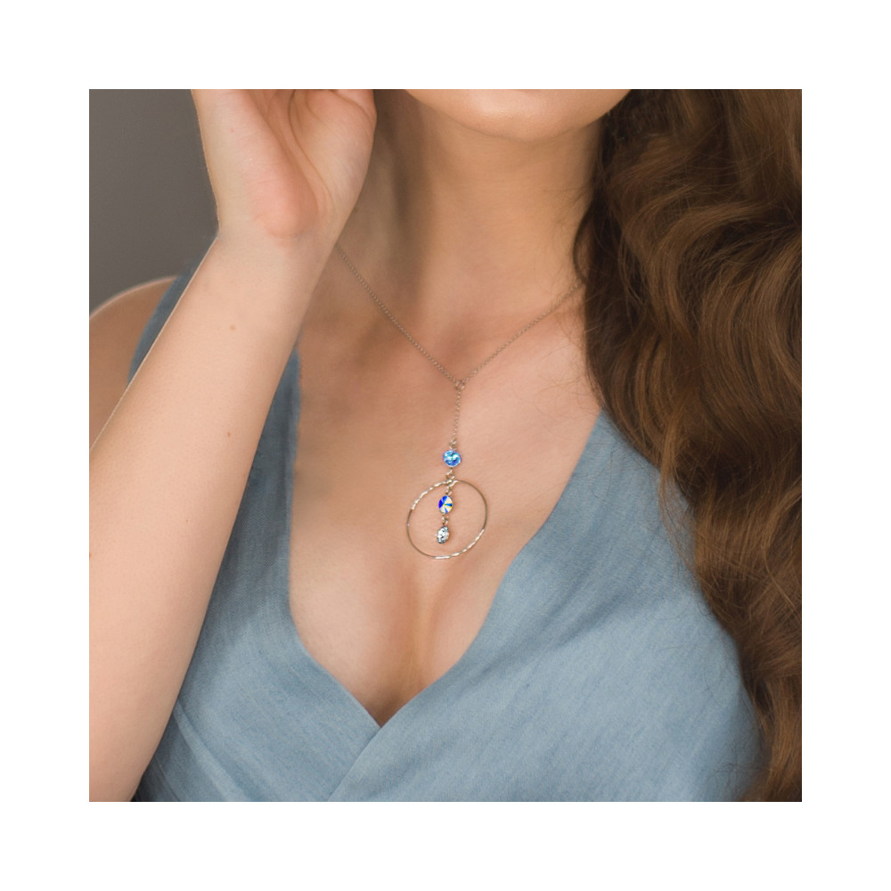 Boucles d'oreille en argent 925 rhodié ornées de cristaux de couleur Aquamarine.Taille des cristaux: environ 0.8 cm.