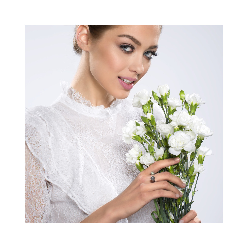Boucles d'oreille en argent 925 rhodié ornées de perles de cristaux crystals en couleur Light Grey.Longueur des boucles d'oreille: 6.5 cm.