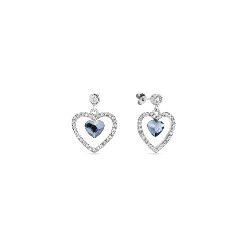 Boucles d'oreilles en argent 925 rhodié ornées de cristaux de couleur Denim Blue.