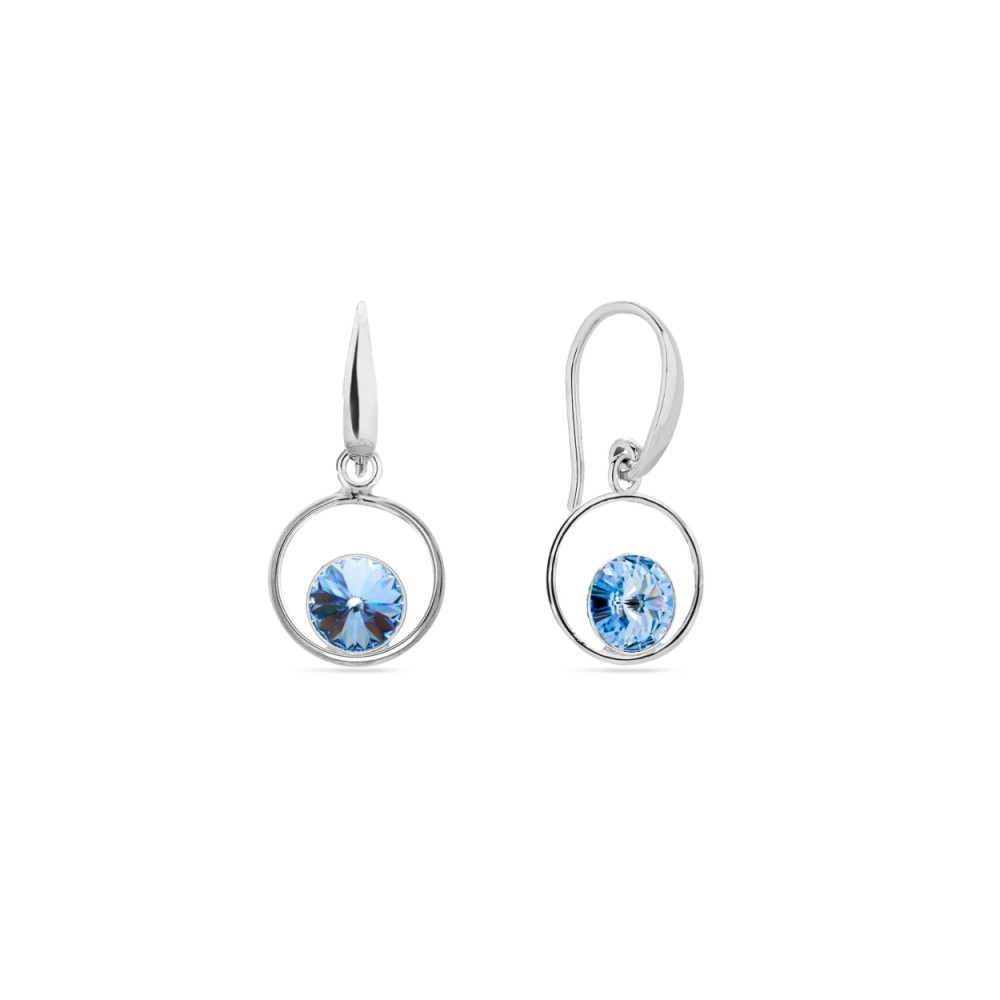 Boucles d'oreilles en argent 925 rhodié ornées de cristaux de couleur Light Sapphire.
