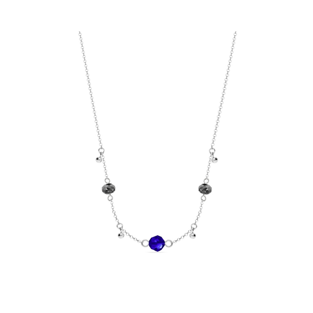 Collier en argent 925 rhodié orné de cristaux de couleur Majestic Blue et Silver Night.