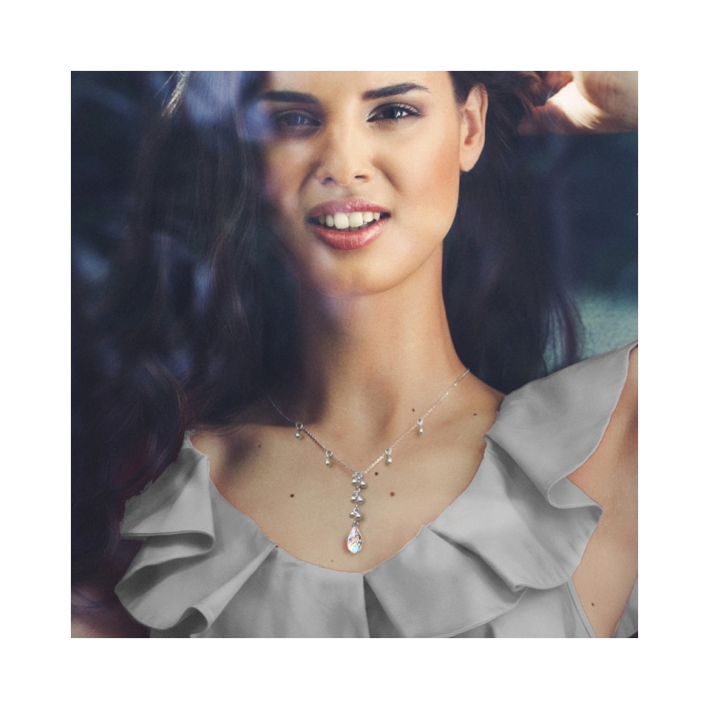 Collier en argent 925 rhodié orné de cristaux de couleur Aurora Borealis.