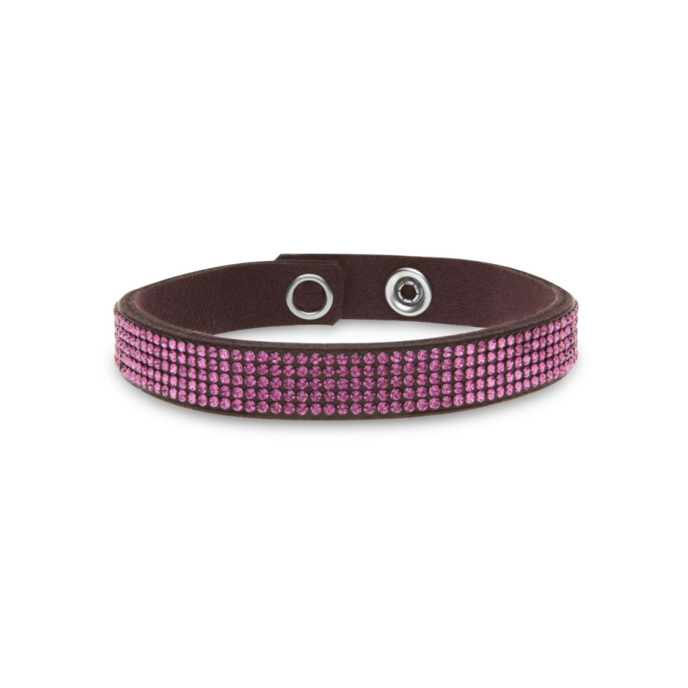 Bracelet en Alcantara® violet orné de cristaux de couleur Rose.Longueur du bracelet: 17.5 cm.Largeur du bracelet: 0.9 cm.