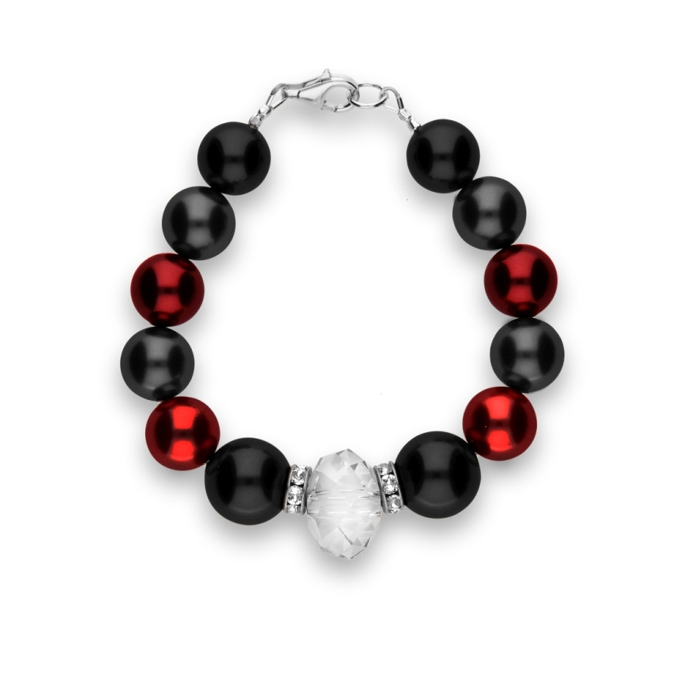Collier en argent 925 rhodié orné de perles de cristaux crystals et de cristaux en couleur Crystal.La longueur du collier: 48 cm.Taille de perle: 0.8, 1.2 et 1.4 cm.