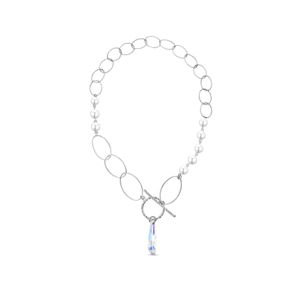 Collier en argent sterling 925, cristaux autrichiens exclusifs de couleur Aurora Borealis et perles de cristaux autrichiennes exclusives de couleur White Pearl.