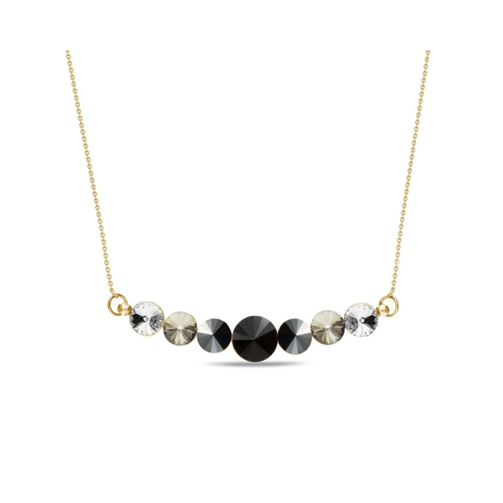 Collier plaqué or sur argent 925 orné de cristaux de couleur Jet, Hematite, Silver Shade et Crystal.
