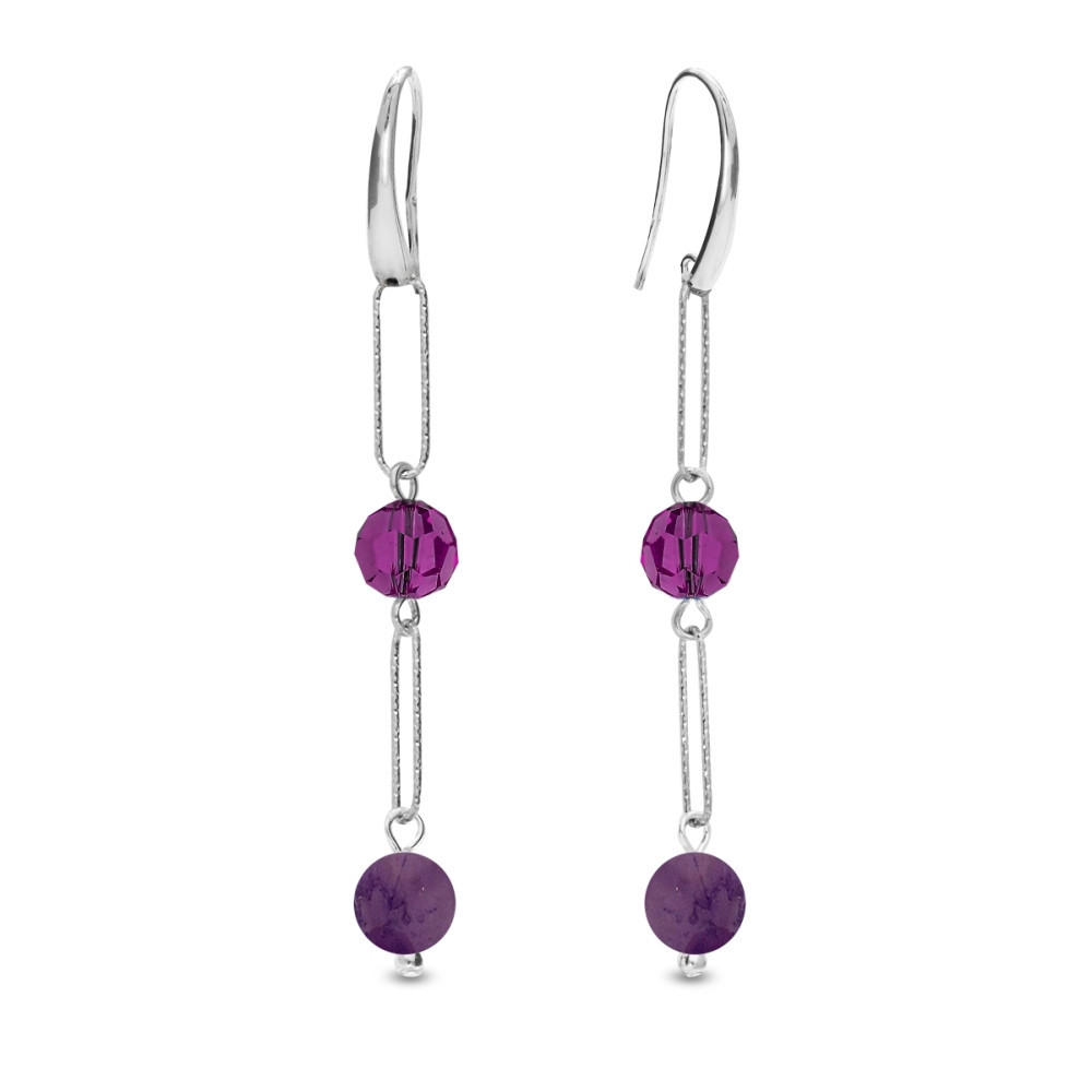Boucles d'oreilles en argent sterling 925, cristaux autrichiens exclusifs de couleur améthyste et pierres naturelles améthyste.
