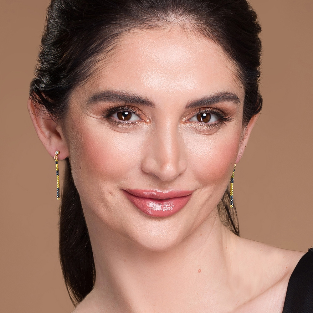 Boucles d'oreilles en argent sterling 925 plaqué or et cristaux autrichiens de couleur Silver Night.Longueur des boucles d'oreilles: 1,5 cm.