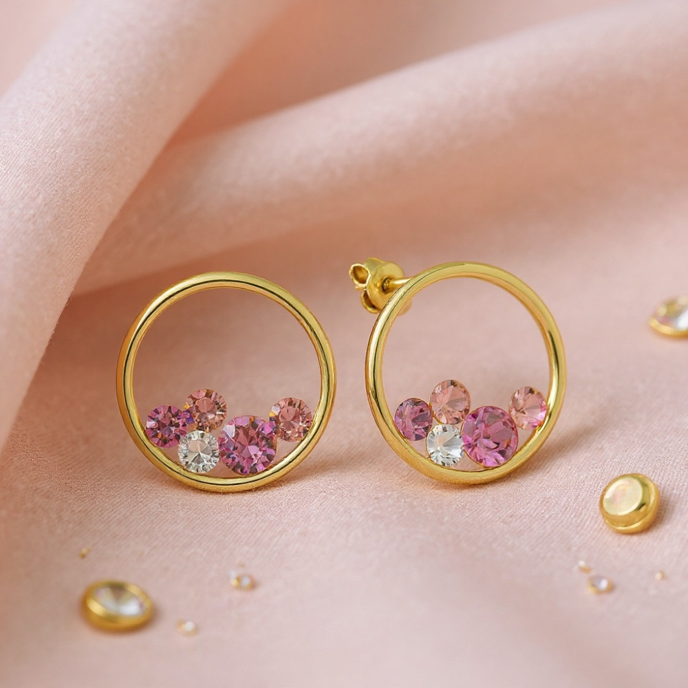 Boucles d'oreilles SCINTILLE en acier inoxydable plaqué or avec cristal rose| SPARK
