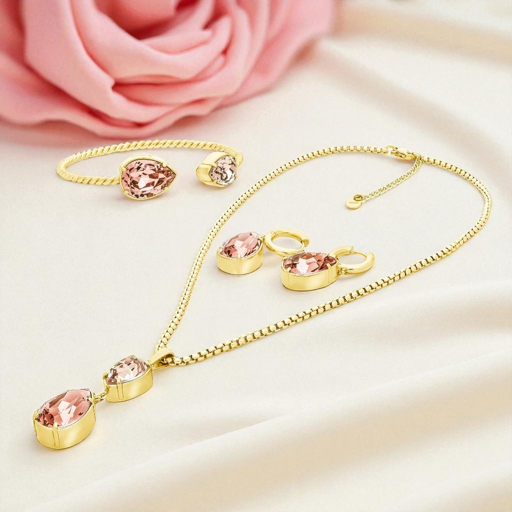 Collier ILLUSION en acier plaqué or avec cristaux rose clair| SPARK