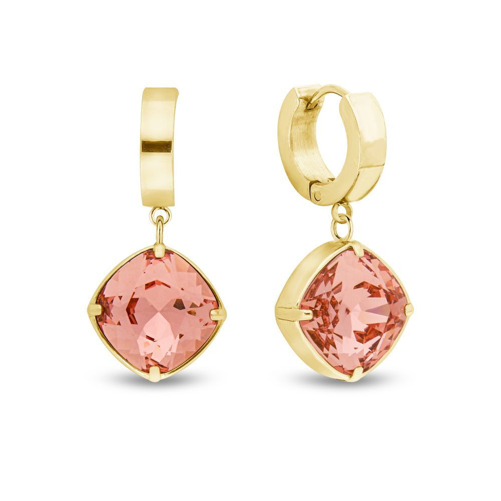 Boucles d'oreilles MIRAGE en acier inoxydable plaqué or avec cristal rose | SPARK