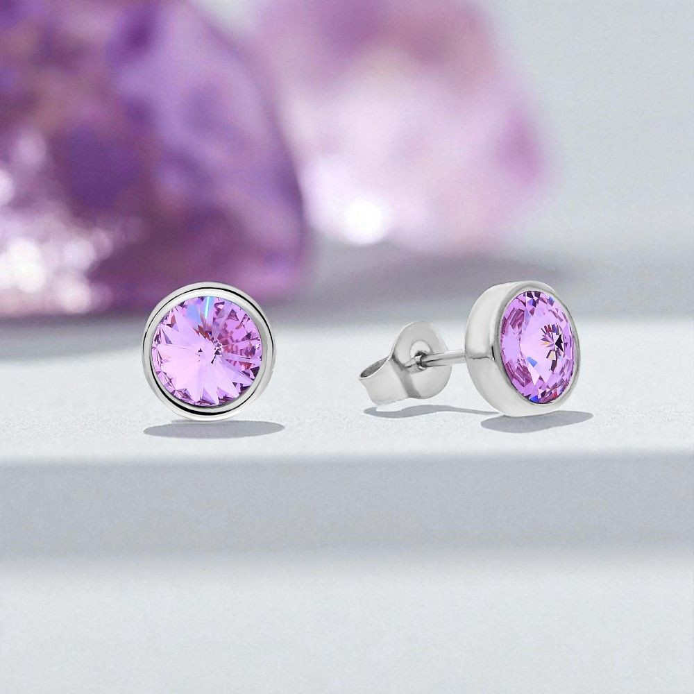 Réalisées en acier inoxydable, elles résistent à l’humidité et ne perdent pas leur éclat. Le cristal Swarovski® violet 6 mm, serti dans une monture de 8 mm, crée un effet lumineux moderne et délicat.
