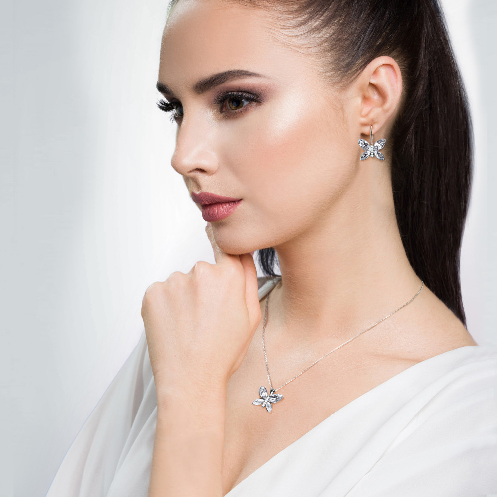 Collier en argent sterling 925 plaqué or et cristaux autrichiens de couleur Silver Night et Sunflower..Longueur de la chaîne: 47 cm (42 cm + rallonge de 5 cm).Longueur du pendentif: 1,5 cm.