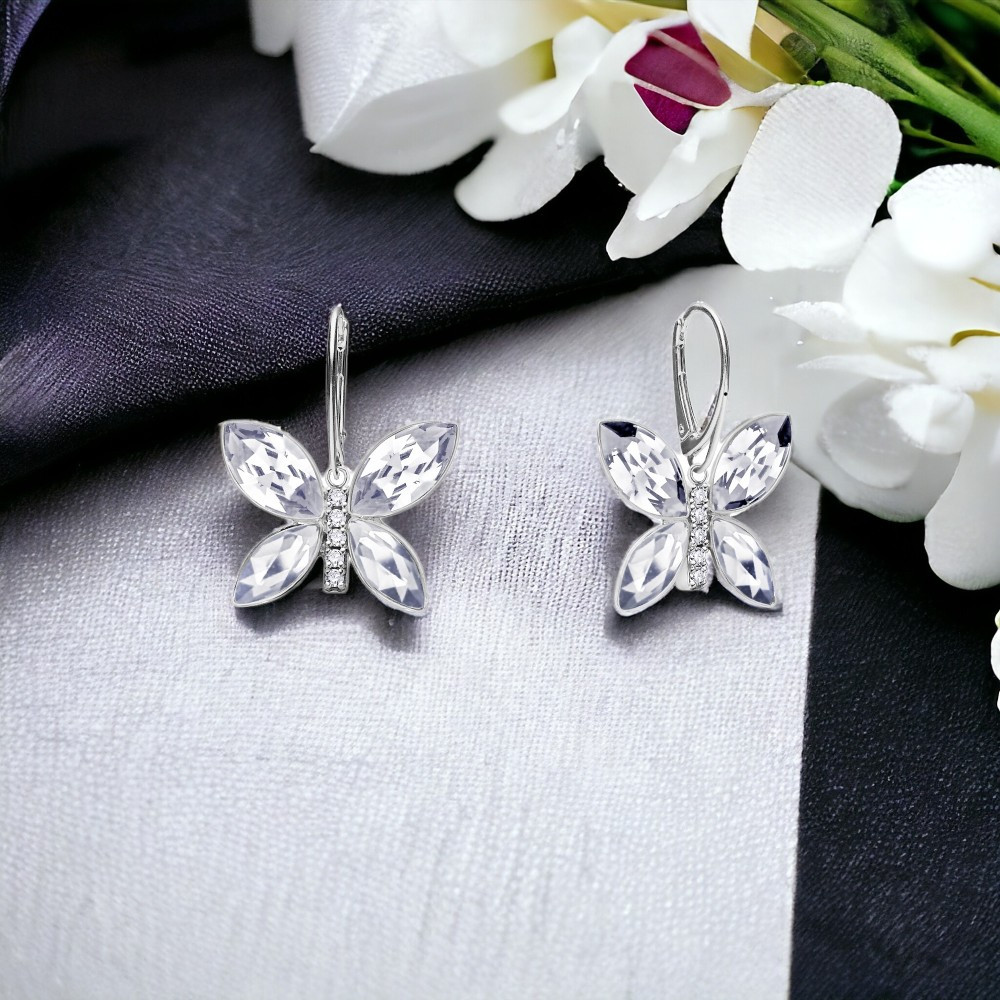 Boucles d'oreilles en argent sterling 925 plaqué platine et cristaux autrichiens de couleur Scarlet et Emerald.La taille des boucles d'oreilles: 1,4 cm.