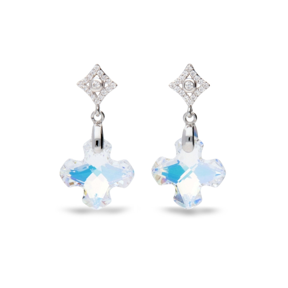 Collier en argent 925 rhodié orné de cristaux de couleur Aurora Borealis.Longueur de chaîne: 61 cm (réglable). Longueur du pendentif: 3 cm.