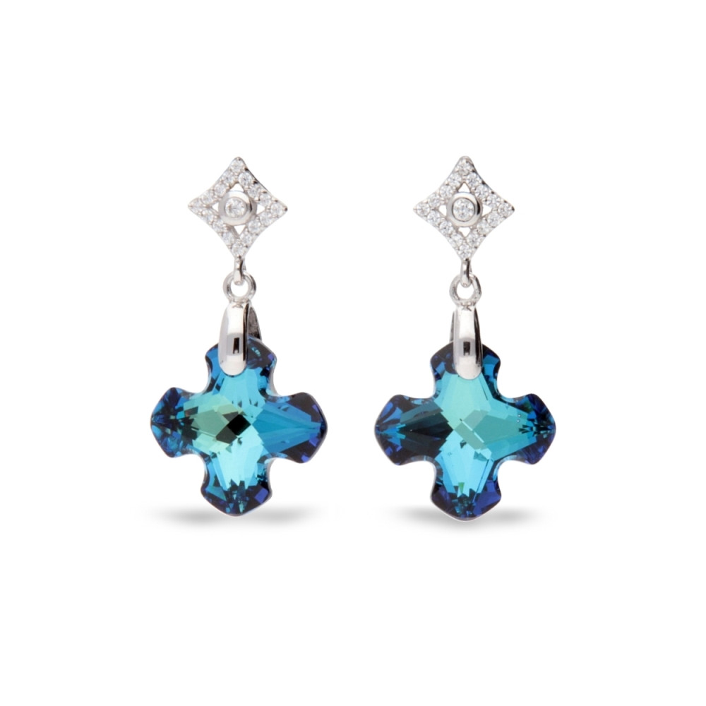 Collier en argent 925 rhodié orné de cristaux de couleur Bermuda Blue.Longueur de chaîne: 61 cm (réglable). Longueur du pendentif: 3 cm.