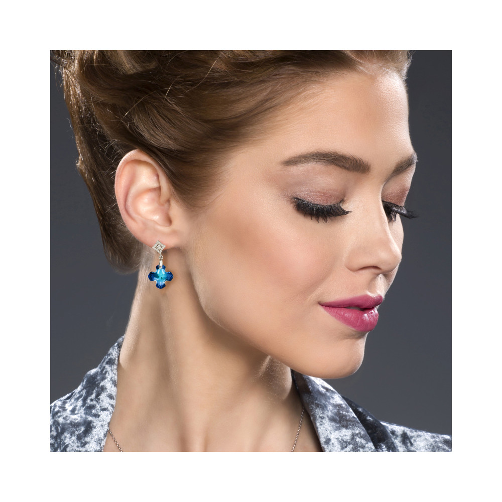 Collier en argent 925 rhodié orné de cristaux de couleur Bermuda BlueLongueur de chaîne: 61 cm (réglable). Longueur du pendentif: 4.1 cm.