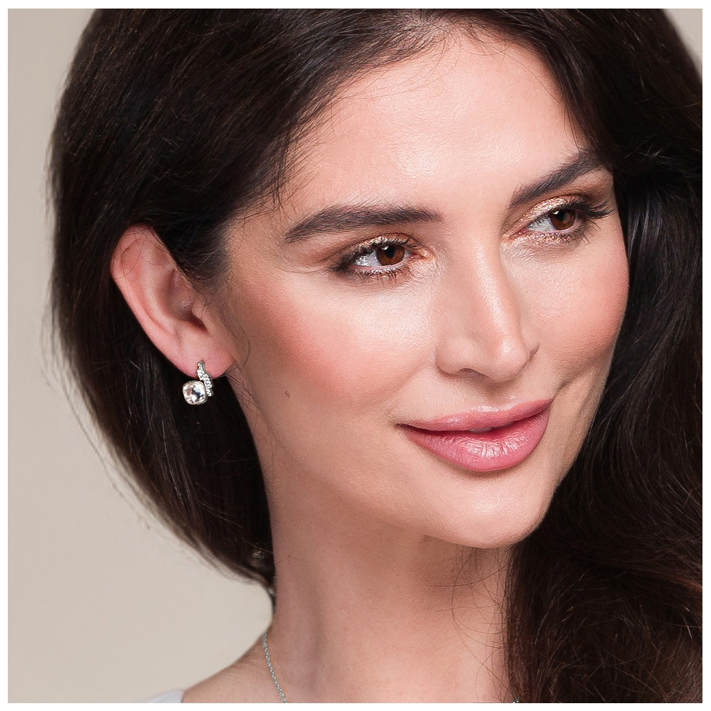 Boucles d'oreilles en argent 925 plaqué de platine, de zircons et de cristaux autrichiens en couleur Crystal.
