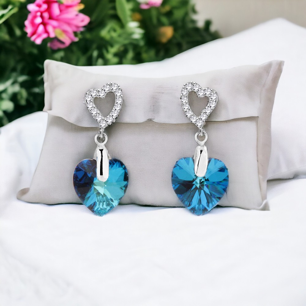 Lorsqu'ils sont combinés, ces éléments - cristaux bleu foncé, argent et forme de cœur - créent non seulement des boucles d'oreilles esthétiquement belles, mais portent également de riches significations et symbolisme, nous rappelant le pouvoir de l'amour, de la paix et du mystère de la vie.